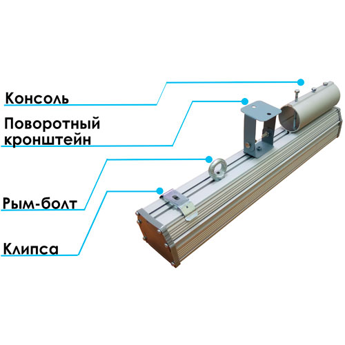 Промышленные светильники со степенью защиты IP65 и выше с креплением на клипсы, поворотные кронштейны, рым-болт или скобу. Материал корпуса анодированный алюминий + заглушки из износостойких пластиков. Материал рассеивателя или линзы — поликарбонат (матовый, прозрачный, призматический), боросиликатное стекло. СВЕТОВОЙ ПОТОК указан для цветовой температуры 5000К, с учетом всех потерь на прозрачном стекле. В светильниках используются светодиоды Refond, LG, Samsung, Osram, Edison, Lumileds, Luxeon. Цветовая температура 3000 и 6000К под заказ. Кривая силы света Д (косинусная), угол рассеивания 120 градусов